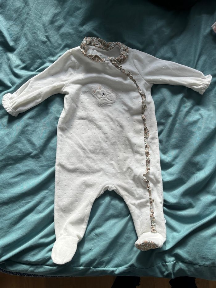 Lot de deux pyjamas en velours 6 mois , un fille, l’autre mixte le blanc est de marque sergent Major Ils n’ont jamais été portés