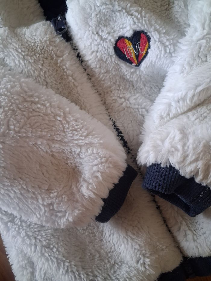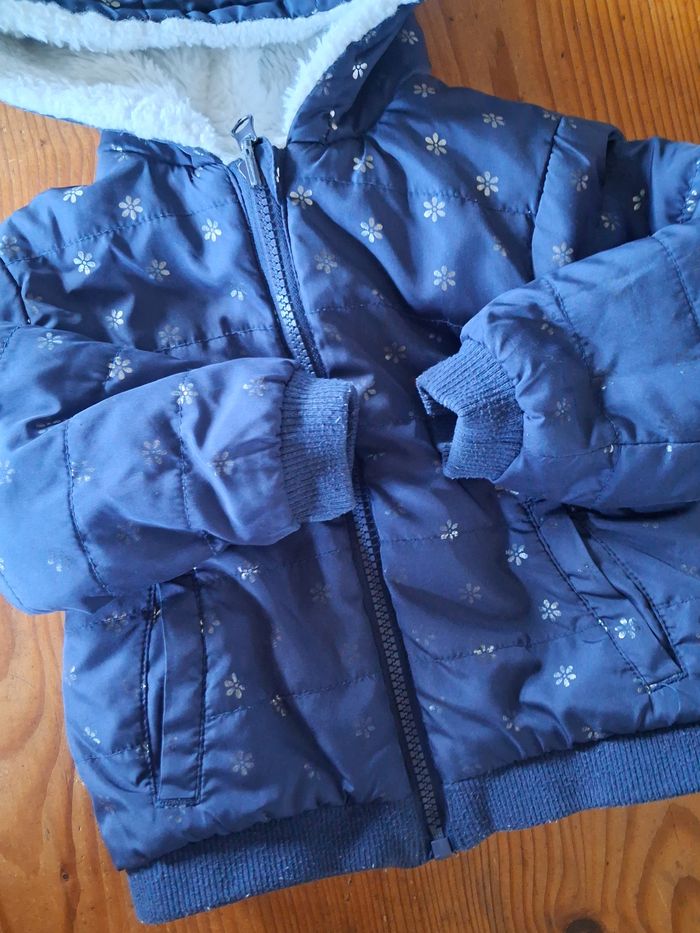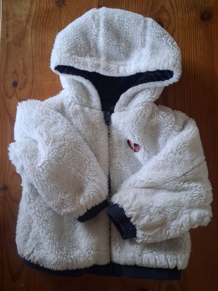 Doudoune réversible bleu d'un côté et blanche toute douce de l'autre côté. En tres bon état.
