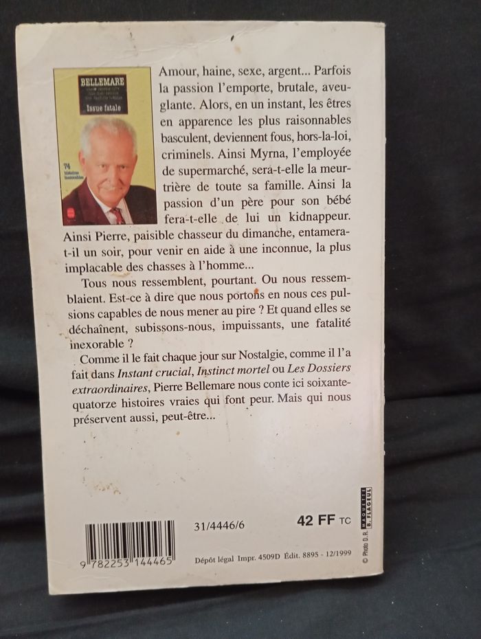Je vends ce livre de Pierre Bellemare, "Issue fatale", une collection d'histoires incroyables. - Titre : Issue fatale - Auteur : Pierre Bellemare - Autres auteurs : Marie-Thérèse Cuny, Jean-Marc Epinoux, Jean-François Nahmias - Genre : Policier - Année d'édition : 1974 Bon état N'hésitez pas à me contacter pour plus d'informations !