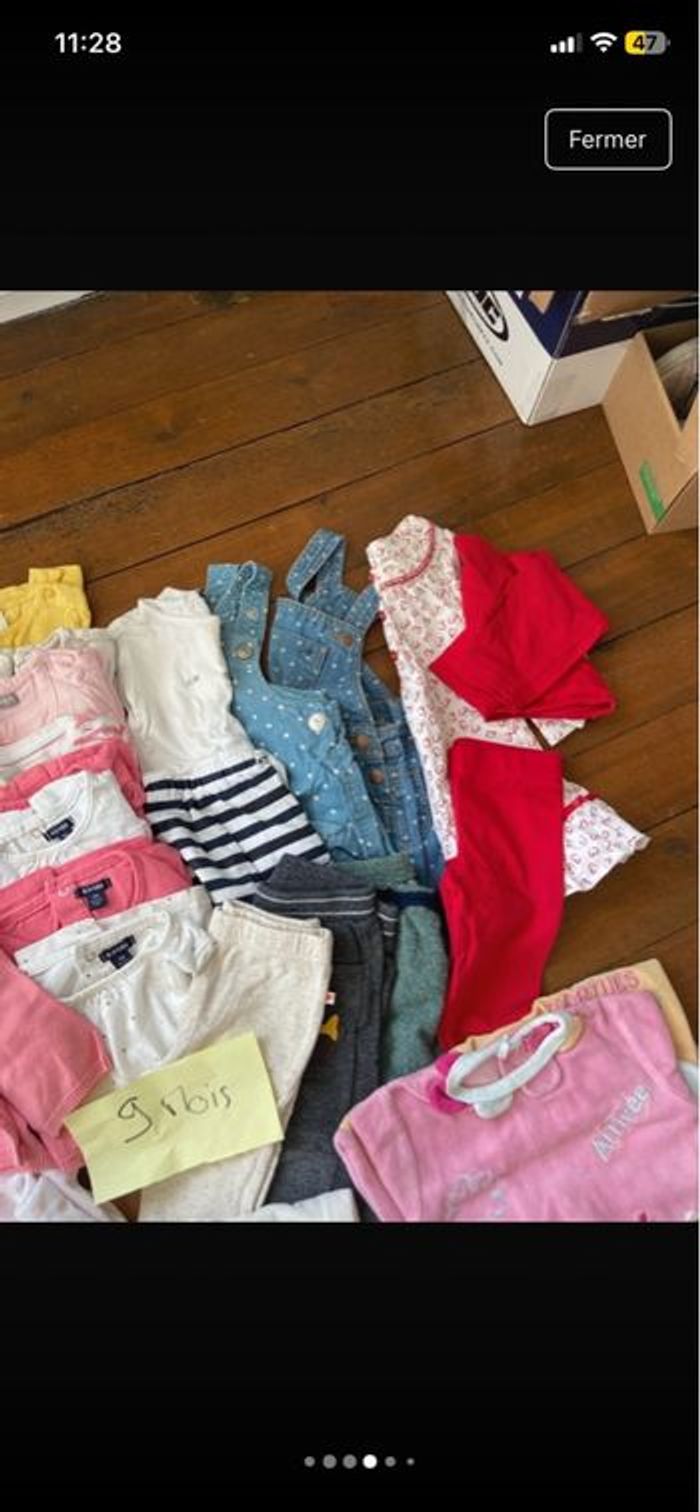 Lot vêtements 6 mois 3 shorts 1 gilet 1 grenouillère 1 robe 1 pull fin Lot vêtements 9 mois 3 pyjamas 1 ensemble robe legging gilet ( rouge) 3 robes (dont 2 en jean à bretelle) 8 t short manches longues 1 gilet 3 pantalons 2 grenouillères