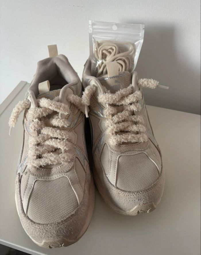 PUMA taille 41 avec lacets fluffy beige + lacets d'origine - photo numéro 1