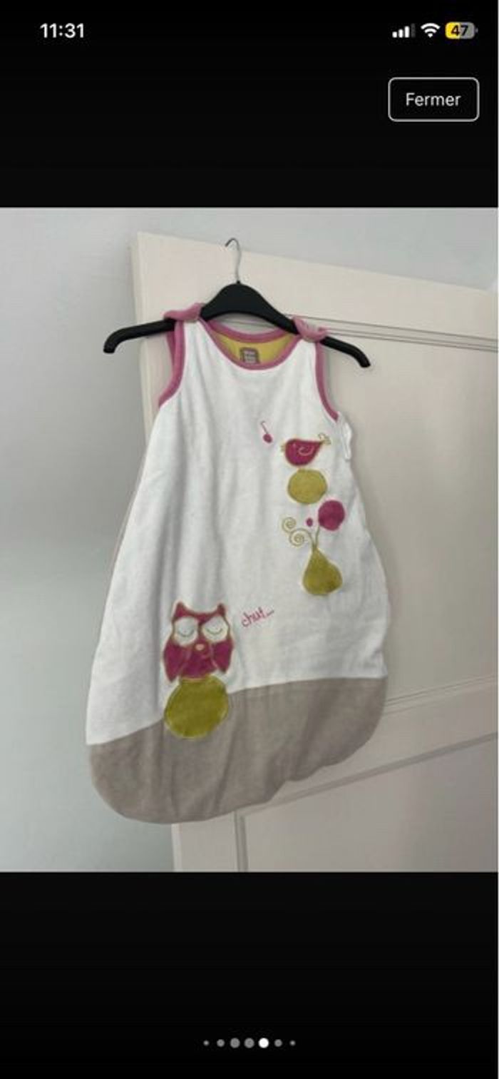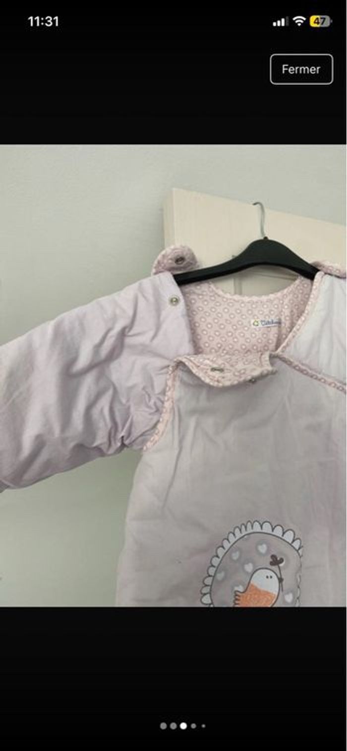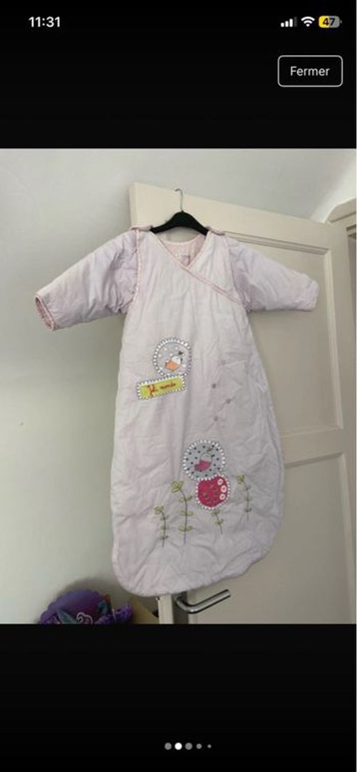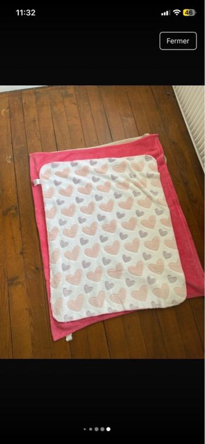 Lot de 2 gigoteuses épaisses La petite 65cm pression en haut et fermeture éclair La grande 90 cm manche détachable à pression fermeture éclair et pression dans le dos pour raccourcir 3 plaids rose et beige 100/90cm et celle cœur 75/85 cm