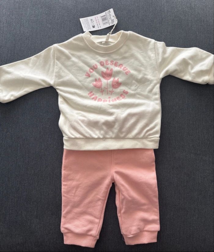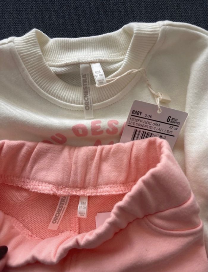 Ensemble jogging et sweat Rose et crème Neufs avec étiquette Marque : Orchestra Taille : 6 mois / 67 cm
