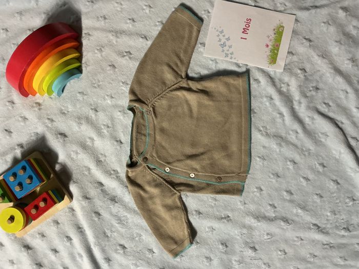 pull léger beige marron clair ouverture devant 1 mois vertbaudet - photo numéro 2