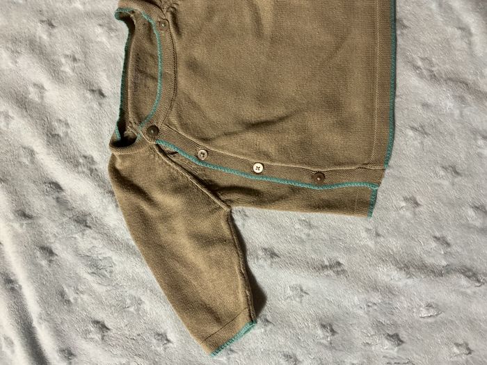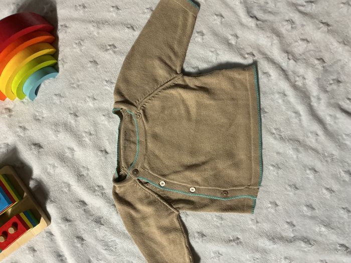 pull léger beige marron clair ouverture devant 1 mois vertbaudet - photo numéro 7