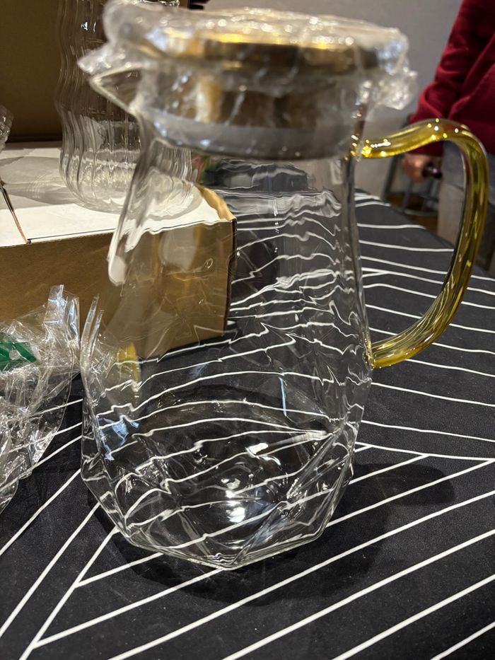 Vends service à thé complet avec son kit de nettoyage et son emballage d’origine. Composé d’un théière et de 8 tasses en verre. Jamais utiliser