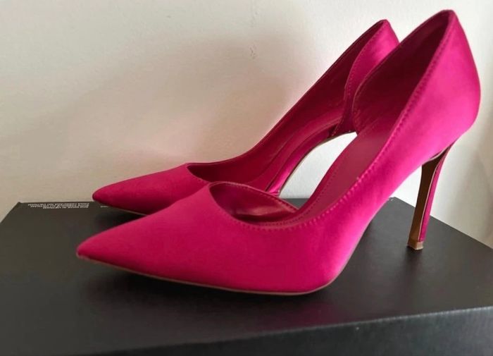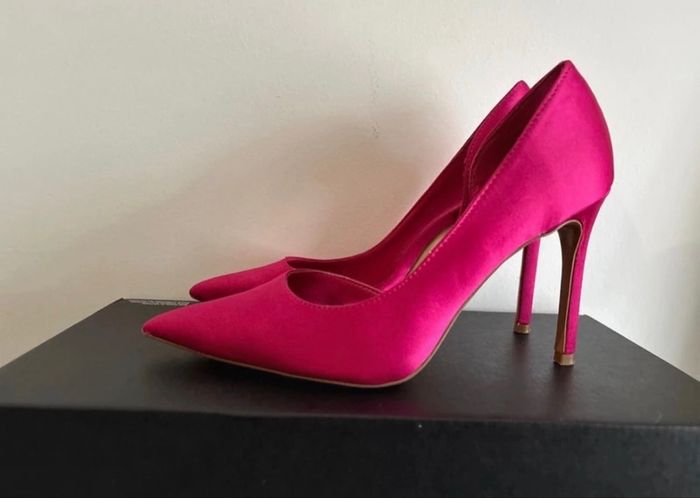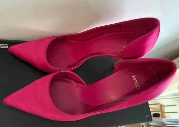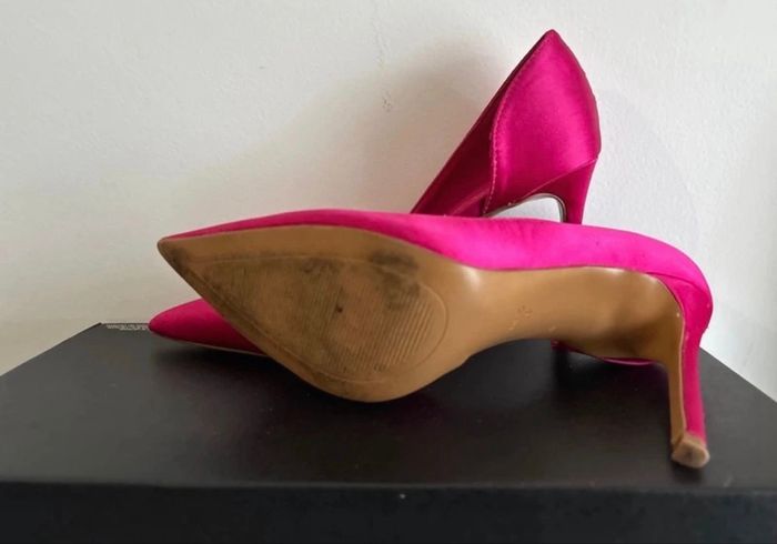 Escarpins style stiletto rose fuchsia Satinés Portés une fois, état neuf Hauteur du talon : 9 cm Marque : Mango Pointure : 36