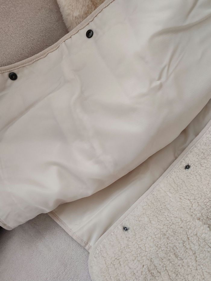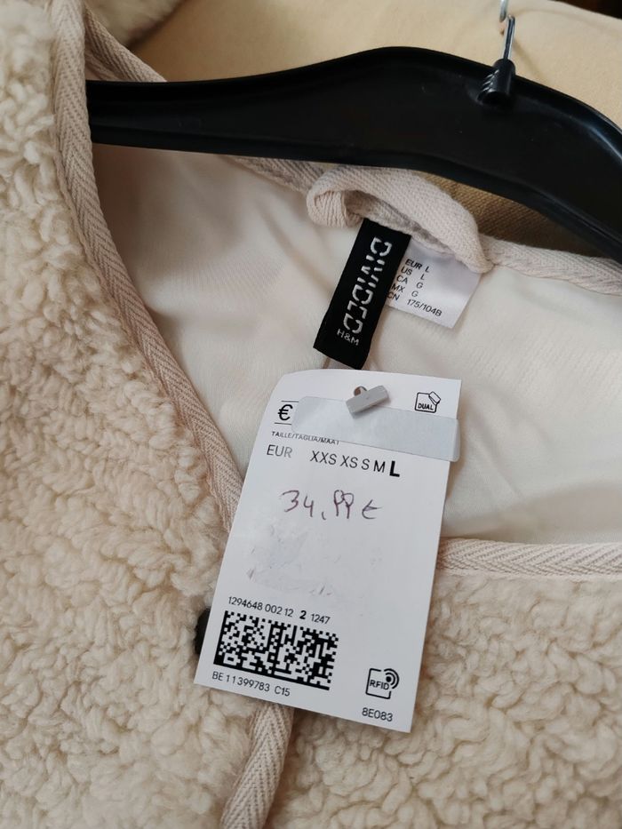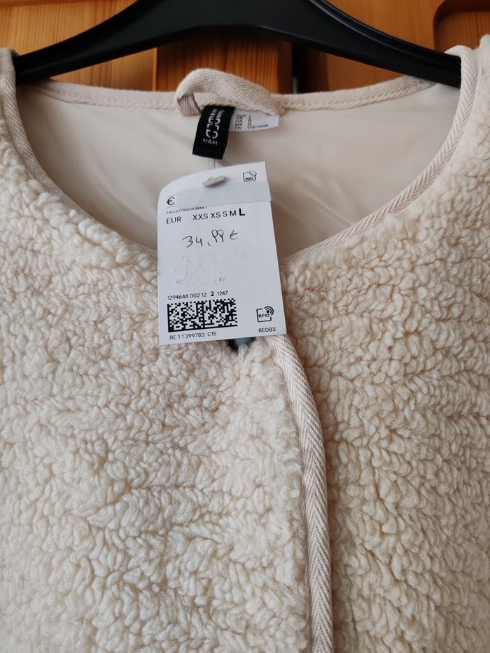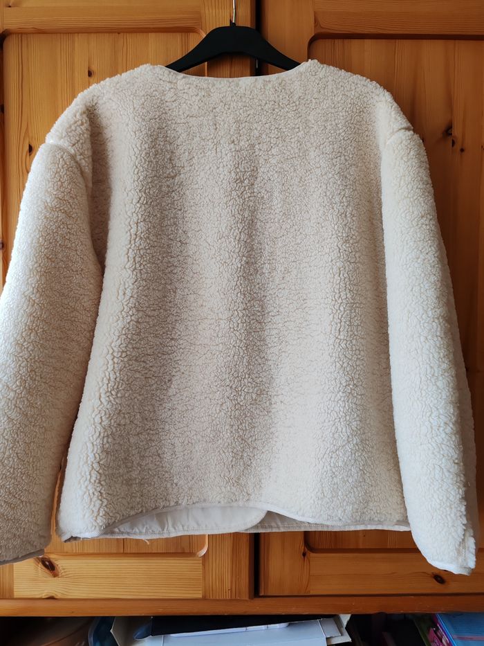 Veste teddy entièrement doublée. 2 poches. Fermeture pression devant. Taille grand .