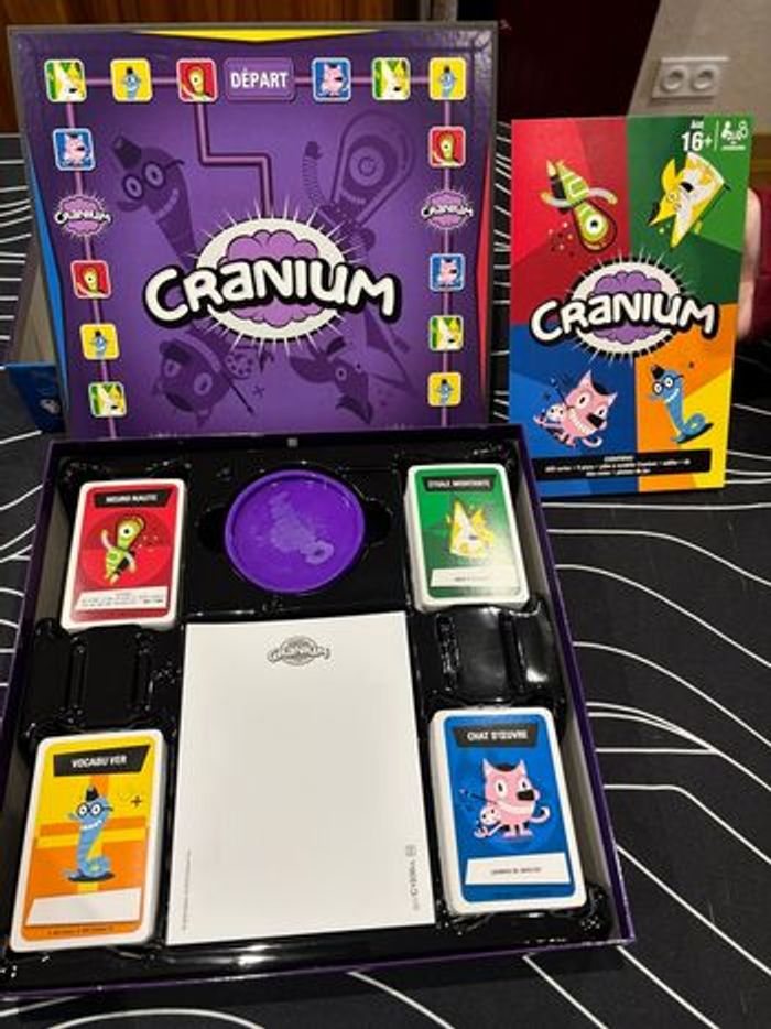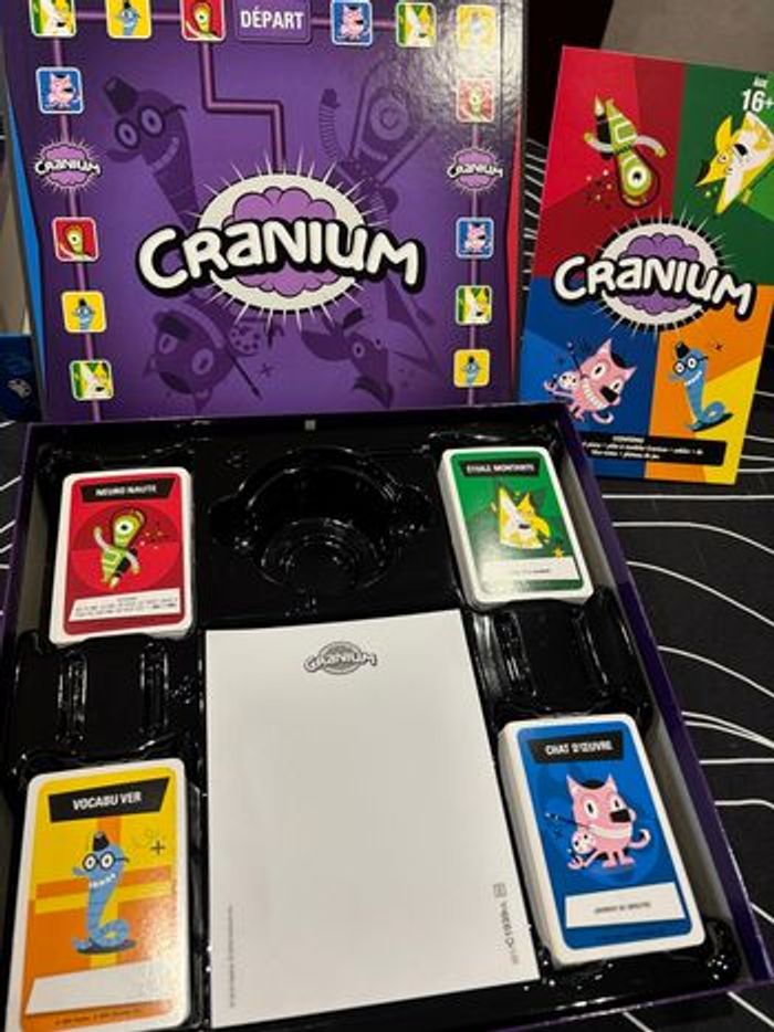 Vends jeu de société Cranium, jouer une fois. Il manque la pâte à modelé car à sécher avec le temps. Le reste du jeu reste en très bon état