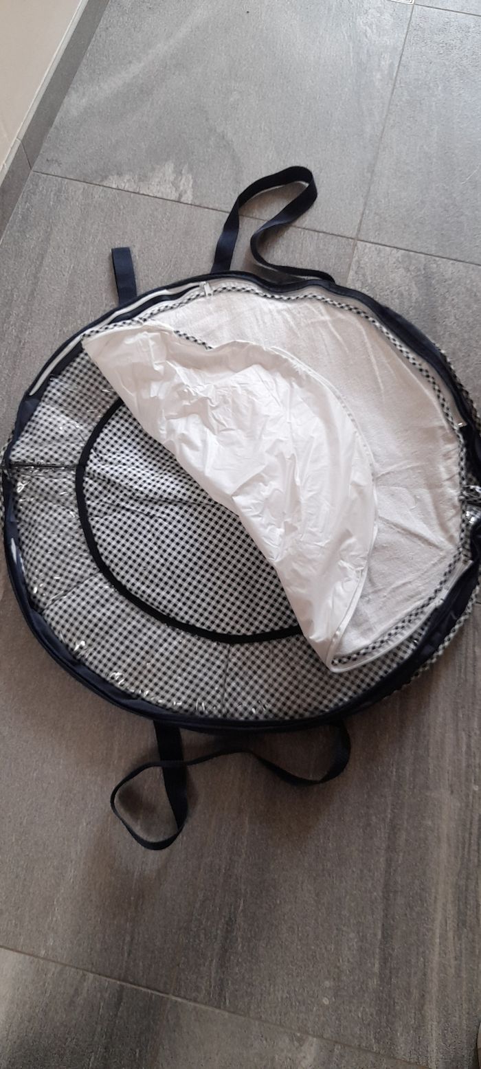 Tapis à langer diametre 78 cm Accompagné de sa pochette de rangement ainsi qu'un etui esotherme pour le biberon Installé bébé sur le tapis pour le changer une fois fini vous pouvez enlever la protection ( 1 coté eponge l'autre coté plastifié) et le tapis peut etre utilisé en tapis de jeu, des pochettes plastifiés peuvent accueillir des jouets