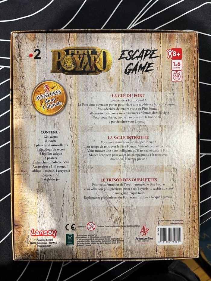 Vends jeu de société espace game fort boyard Revolvez des énigmes dans l’univers de fort boyard 😊 Jeu jamais utiliser (juste déballer), les énigmes sont intacts, en très bon état