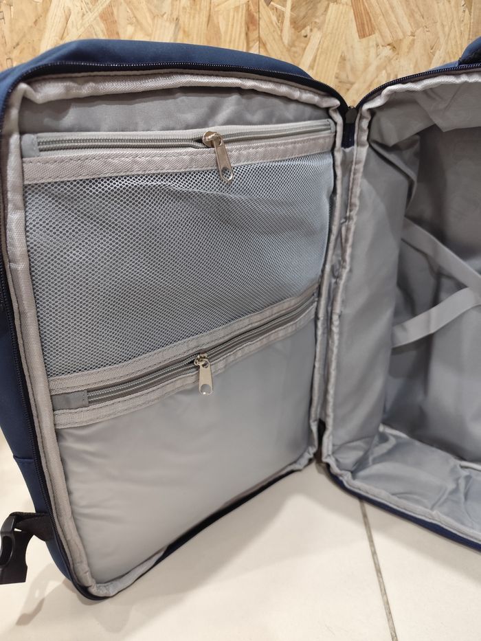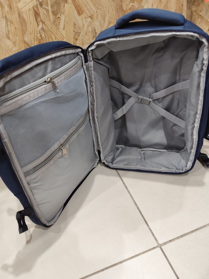 À vendre sac à dos bagage cabine idéal pour les voyages en avion mais également pour des petits weekend Ne payez pas pour votre sac en avion conforme au dimension Matière nylon imperméable et déperlant, robuste et confortable pratique avec ses nombreuses pochettes de rangement sac jamais utilisé avec étiquette