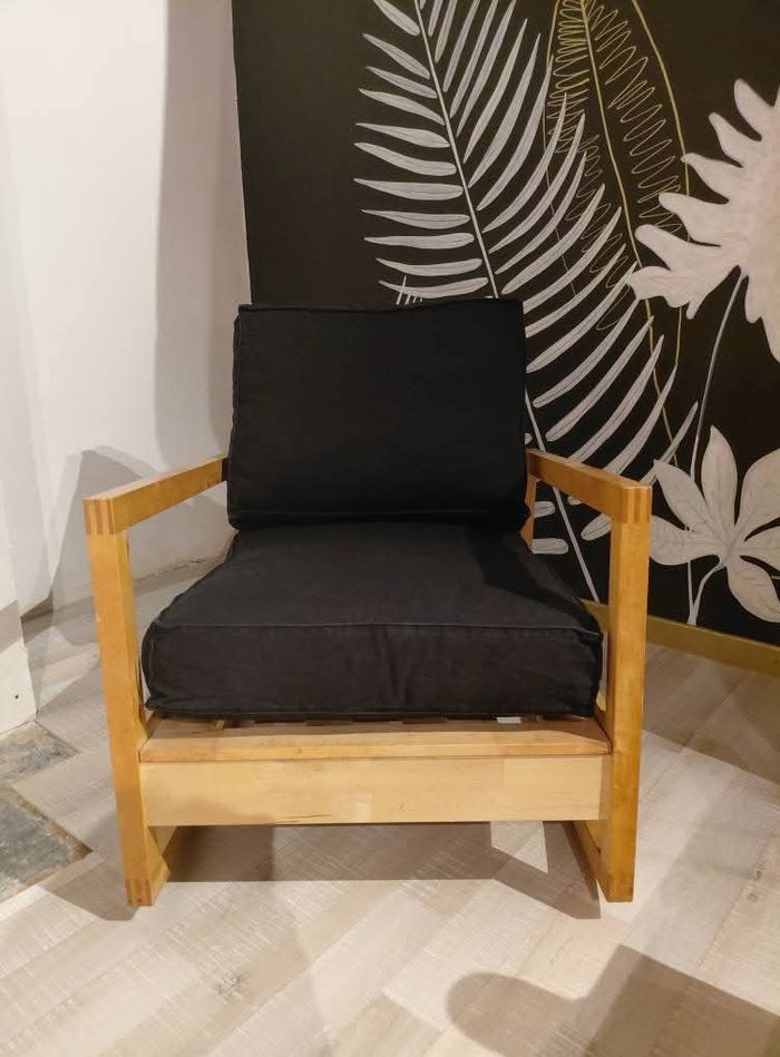 A vendre : Fauteuil Lillberg Ikea Par les designers Nike Karlson et Jon Eliason pour Ikea, 2007 -structure en bois de hêtre avec dossier inclinable par glissement de l’assise ou rabattable pour le stockage - coussins fermes, 1 paire de housses en tissu noir 100% coton. 1 paire de housses en tissu blanc 100% coton. - Dimensions : Pieds:Longueur 90 cm Longueur totale: 95 cm environ Largeur 68 cm Hauteur d'assise 42 cm Hauteur des accoudoirs 61 cm