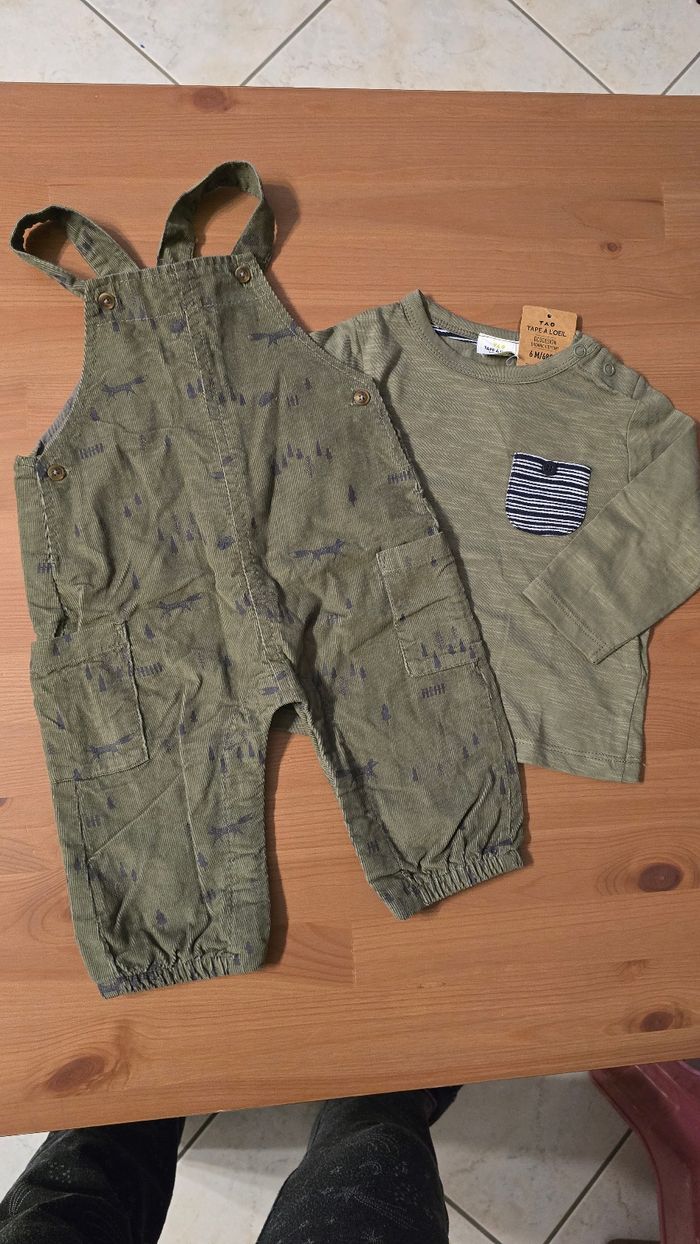 (Neufs non portés)🥰💙 salopette et teeshirt ml 6 mois Garçon 🤩🥰 - photo numéro 1