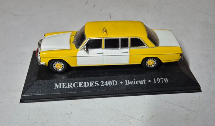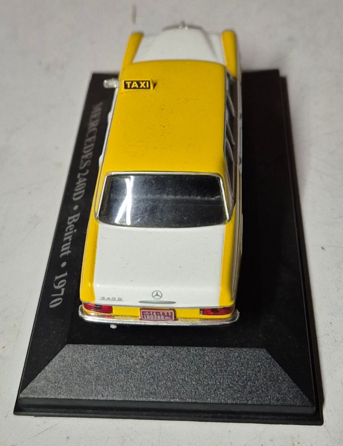 Voiture miniature Altaya MERCEDES BENZ 240D TAXI Beyrouth 1970 echelle 1:43 Sur socle Etat correspondant aux photos #taxibeyrouth #mercedesbenz #mercedesbens240d #voitureminiature #voitureminiaturealtaya #altayataxi #altayataxicollection
