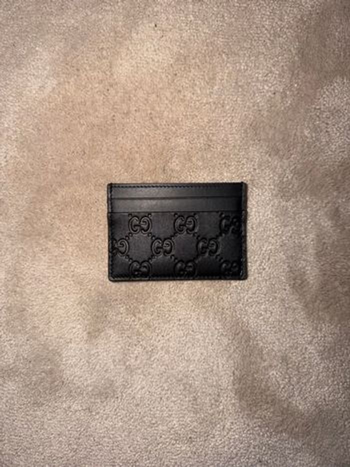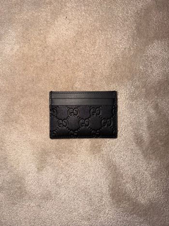 Porte-cartes Gucci en toile GG Supreme noire avec finitions en cuir. Modèle élégant et intemporel, idéal pour cartes et papiers du quotidien. Format compact, facile à glisser dans une poche ou un sac. État : neuf, jamais utilisé Authenticité : 100 % authentique, provenance outlet Italie Référence : 233166•525040