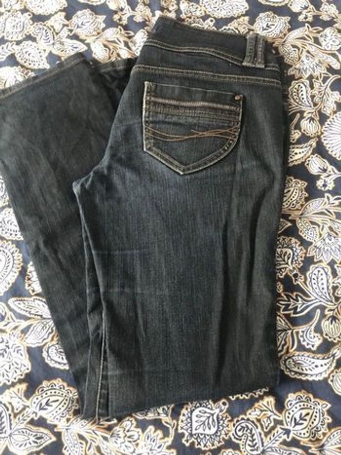 Jeans femme marque cache cache Taille 40 voir photo avec mesure longueur totale 102 cm Bleu marine