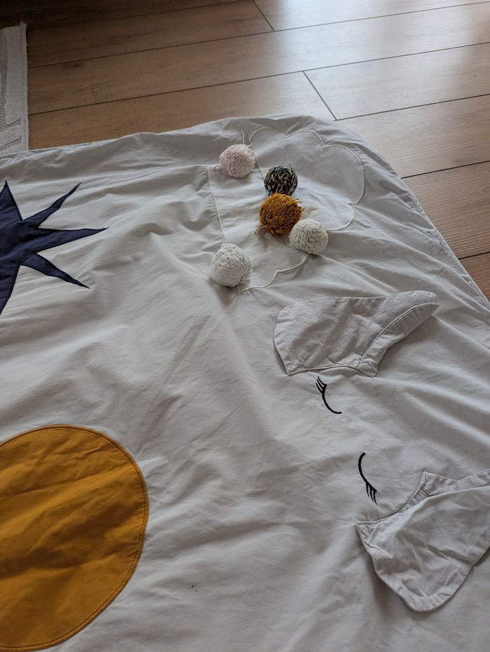 Tapis de jeu de la marque Liewood. Il y a quelques défauts d'usure (voir les photos). Il mesure 110 cm x 110 cm. Prix neuf : 100 euros