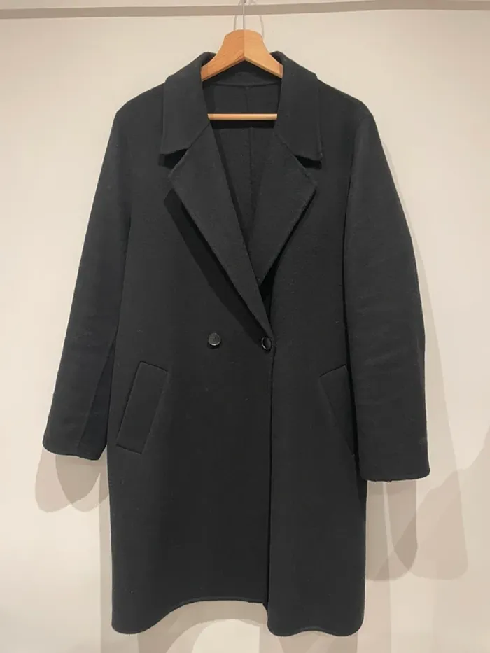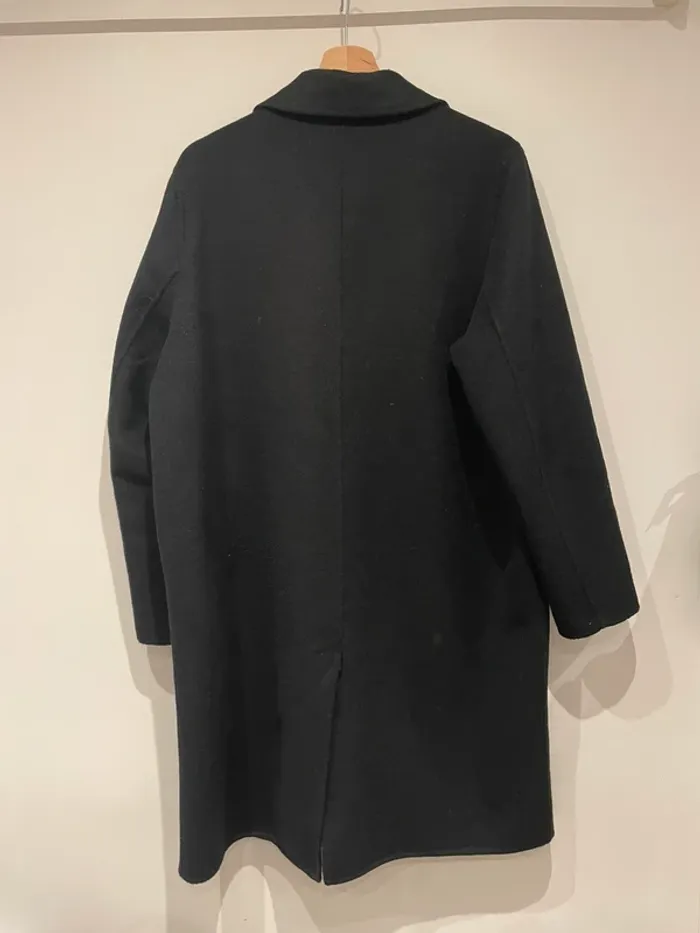 Manteau superposé mi-long. Coupe droite. Porté 2-3 fois. Aucun défaut. Contient 51% de la laine. Largeur entre les aisselles 58 cm, entre les épaules 42cm, longueur 102cm.