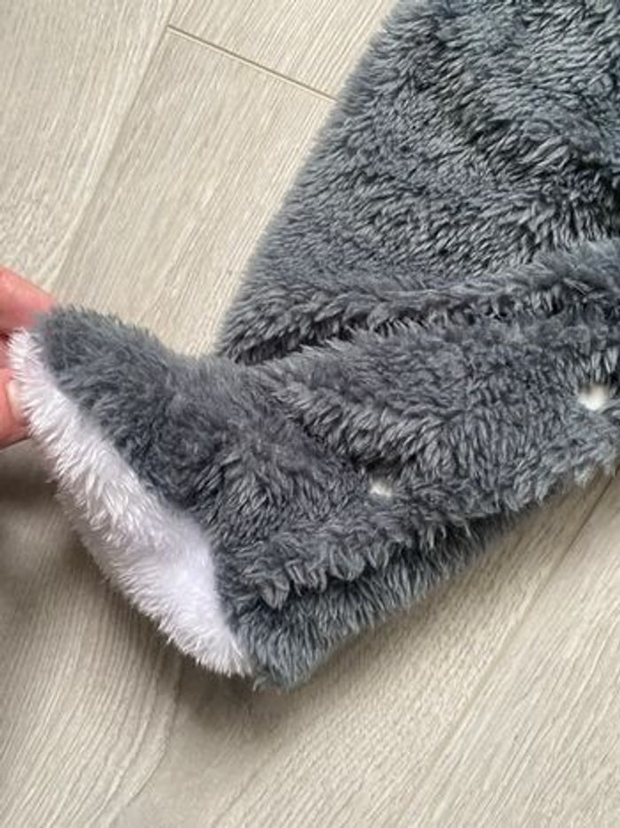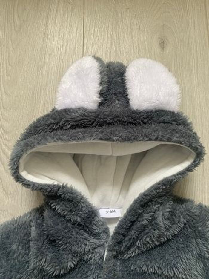 Combinaison douce et chaude pour l’hiver avec capuche Fermeture par pressions Pieds couverts Taille 0-6 mois Quasiment neuve car elle a servi 2 ou 3 fois