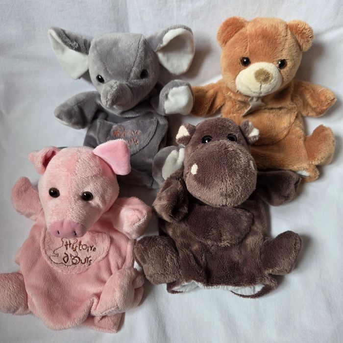 Lot de 4 marionnettes Éléphant/ ours/ cochon/ Hippopotame- Histoire d'ours