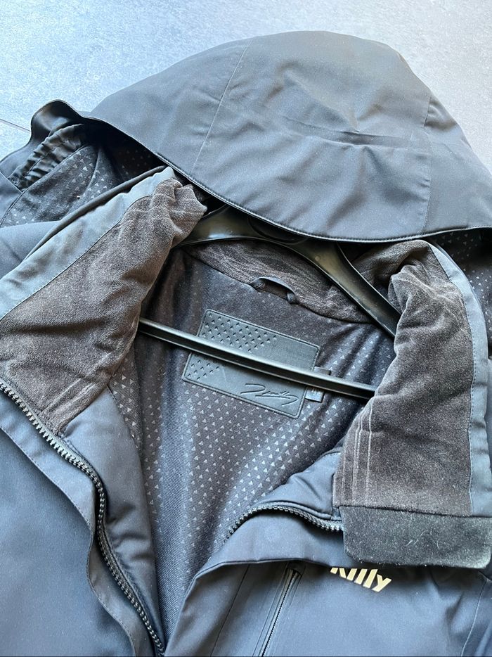Blouson/veste de ski homme - Marque Killy, très belle qualité et finitions - Coloris noir - Taille 52 (FR) - De nombreuses poches dont poche sur la manche pour ranger le forfait, petit chiffon dans la poche intérieure pour nettoyer le masque ou les lunettes. - Capuche amovible et réglable - Jupe intérieure pare neige amovible et réglable. - Très bon état (À noter : les languettes pour resserrer les manches avec scratch sont manquantes, elles se sont détachées) - (Prix neuf 600€)