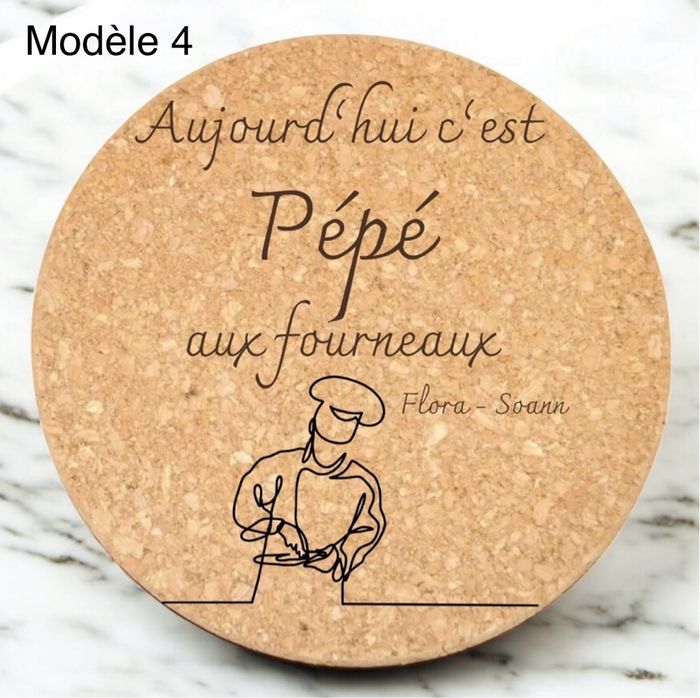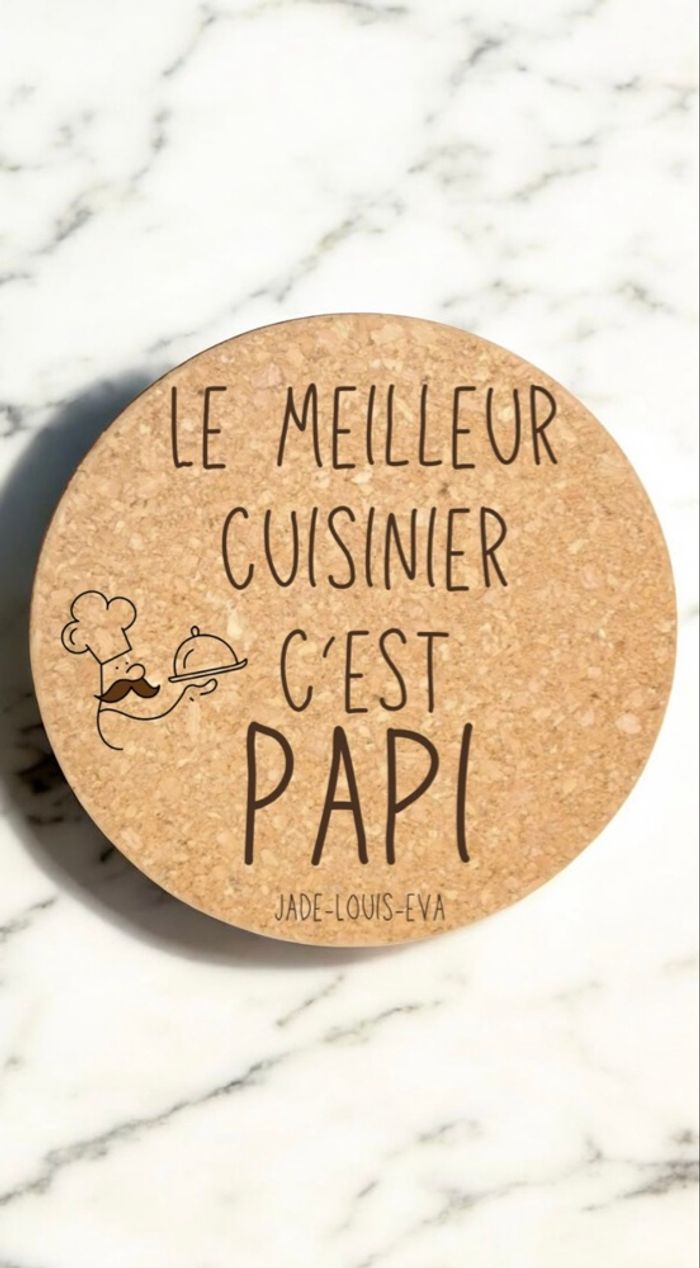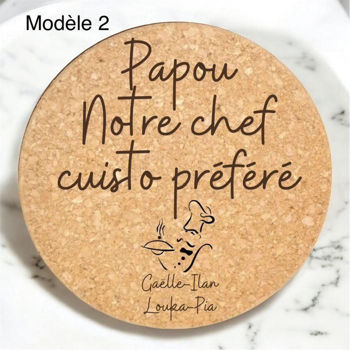 Offrez un cadeau à la fois utile, écologique et unique avec ce joli dessous de plat en liège personnalisé ! ✨ Caractéristiques : • Matière : liège naturel, durable et résistant à la chaleur • Diamètre : environ 19 cm • Gravure : réalisée au laser pour un rendu précis et élégant • Fabrication artisanale dans notre atelier du sud de la France 🎨 Personnalisation : • Choisissez parmi nos modèles proposés • Remplacez le nom selon vos envies (ex. Papi → Papou, Maman, Mamie, Parrain, etc.) • Possibilité de modifier le destinataire pour un cadeau vraiment sur-mesure 🎁 Idée cadeau parfaite : • Fête des grands-pères • Fête des mères / pères • Anniversaire • Noël • Ou simplement pour faire plaisir à vos proches 🌿 Pourquoi le liège ? Le liège est une matière naturelle, écologique et légère, idéale pour protéger vos tables tout en apportant une touche chaleureuse à votre intérieur. ⸻ 👉 Comment commander ? 1. Sélectionnez le modèle souhaité. 2. Indiquez le prénom ou le mot à graver dans la case personnalisation. 3. Validez votre commande : nous réalisons la gravure avec soin et expédions rapidement ! ⸻ 📦 Envoi rapide et soigné depuis notre atelier du sud de la France. •cadeau •idée cadeau •idée cadeau papi •cadeau papi •idée cadeau fête des grands-pères •idée cadeau fête des grands-mères •idée cadeau fête des mères •idée cadeau fête des pères •dessous de plat •dessous de plat en liège •dessous de plat personnalisé •cuisine •gravure •gravure sur liège •cadeau de noël •idée cadeau de noël
