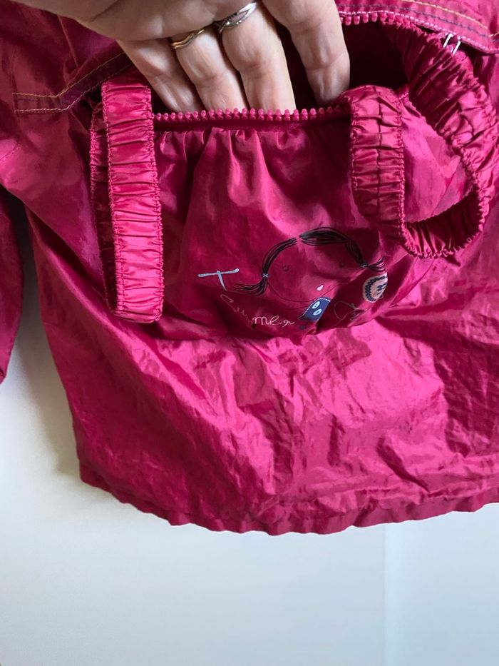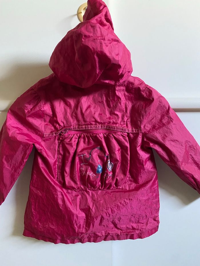 Imperméable style Kaway « Polochon » 4 ans, avec capuche, poche devant et une poche dans le dos pour replier le Kaway et le porter sur le dos (façon sac à dos)