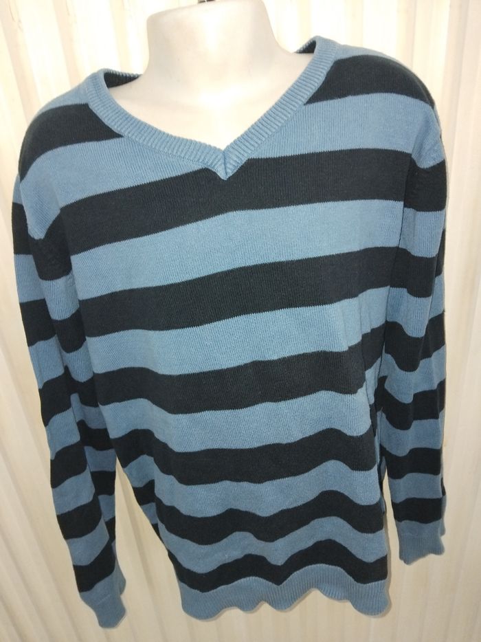 Très beau pull pour un garçon De couleur bleu et noir à rayures Col en v