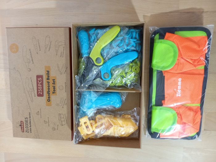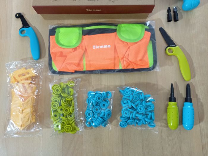 Kit de bricolage pour enfant 258 pièces 🔍​ Description: ✨ Etat: Jamais utilisé, tout les éléments sont encore sous film (une pochette est arrivée décelée sur un angle, je l'ai scotchée) ✨​ Style: Jeu d'imitation /loisirs créatifs ✨​ Thème: Coordination main-œil / motricité fine / imagination ✨​ Age: Dès 5 ans Autres jouets d'inspiration Montessori disponibles! ⚠️ Il ne s'agit pas de la marque Montessori mais d'un jeu s'inspirant de cette pédagogie. 🔍 Inclus: 258 pièces: 60 vis et écrous courts, 30 vis et écrous longs, 24 connecteurs d'angle, 12 charnières et 36 anneaux d'espacement qui permettent le mouvement entre les couches de carton. Les enfants peuvent concevoir et construire des modèles interactifs avec des parties mobiles et stables grâce au jeu STEM. 🛠️ Design sûr et éducatif, conçu pour les enfants: Le design caractéristique de ces outils aux bords arrondis les rendent adaptés aux enfants et facile à manipuler. ⚡ Ceinture à outils réglable: Ce kit est livrée avec une perceuse (piles non incluses) pour enfants et une ceinture à outils pour un jeu mains libres. Les enfants peuvent passer de l'assemblage manuel à l'assemblage électrique, se sentant comme de vrais constructeurs grâce à un jeu de construction immersif. ♻️ Boîte cadeau et de rangement: Emballé dans un coffret cadeau en papier kraft épais qui fait également office d'étui de rangement réutilisable. ZLemma encourage le jeu durable en utilisant des matériaux recyclables et un emballage éco-conscient, enseignant aux enfants la valeur de la réutilisation et de la protection de l'environnement. 🌈 Guide créatif inclus: Avec un livre d'instructions complet en couleur présentant des explications sur les outils et des projets créatifs. Des robots mobiles aux maisons en carton, les enfants peuvent explorer des idées de design infinies, ce qui en fait le jouet éducatif STEM parfait pour les enfants de 5 à 12 ans pour construire, apprendre et créer!