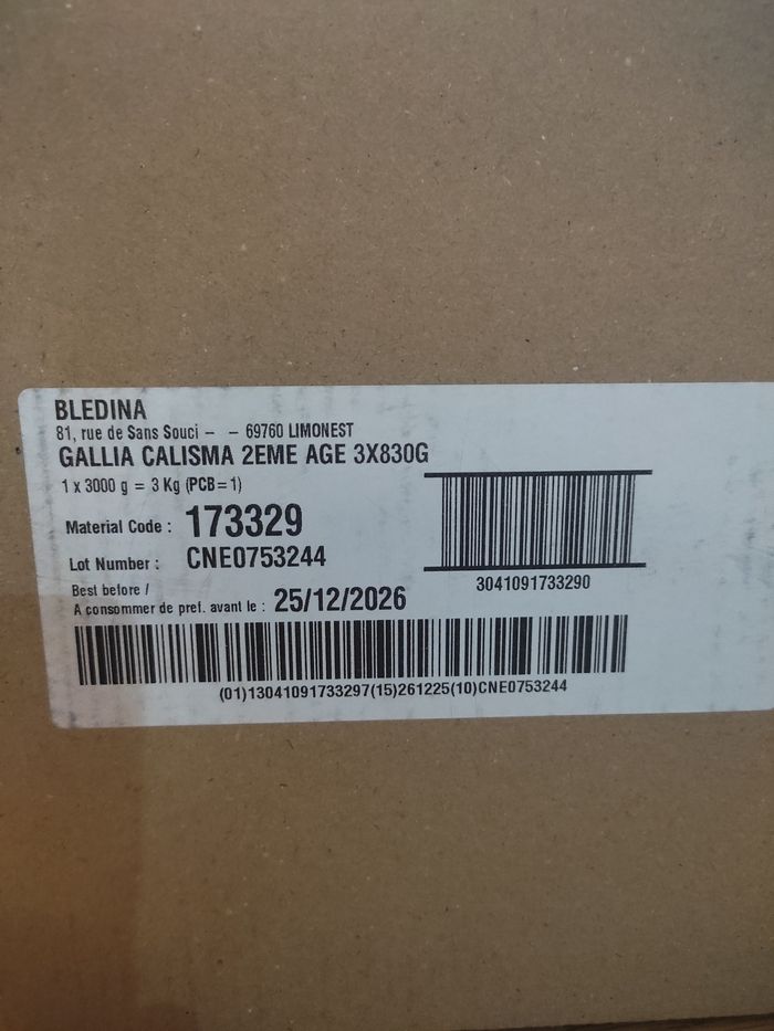 À vendre carton de 3 boîtes de GALLIA CALISMA 2. Carton non ouvert.