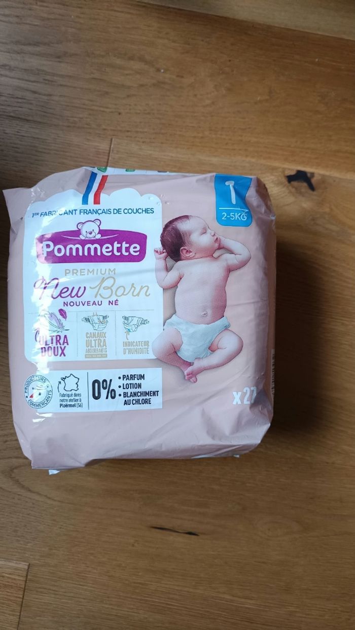 Je vends deux paquets de couches de la marque pommette, taille 1 (2-5kg) Un paquet est ouvert et il reste 18 couches. L'autre est complet.