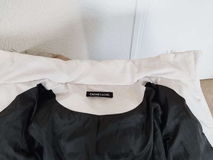 Vends manteau femme acheté à Cache-cache, en très bon état général. Il possède 4 poches sur le devant, peut se resserrer pour être + cintrée à l'intérieur via les élastiques et la capuche peut être démontable. Très joli ! De légères petites tâches mises en dernières photos mais n'empêchent absolument pas son utilisation, reste en très bon état. Taille : 38 Valeur : 69.99€