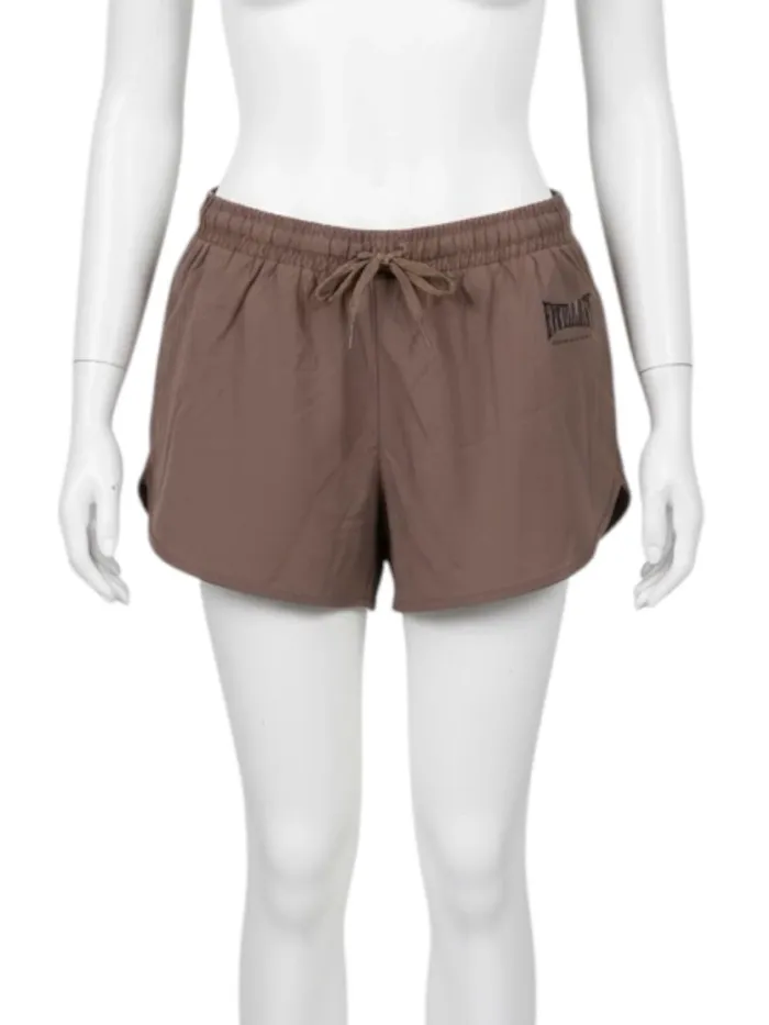 Short Everlast pour femme de couleur marron. Confortable et extensible, idéal pour le sport ou les activités décontractées. Tissu respirant offrant une grande liberté de mouvement. Composition : • 89 % polyester • 11 % élasthanne