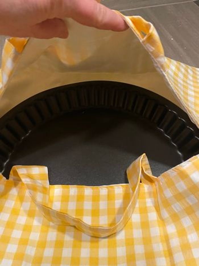 Extérieur coton Intérieur tissu coton 42cm X 42cm Lavable en machine et sèche linge autorisé S’adapte à tous types de plats Sac à gâteau Sac à pizza Idée cadeau