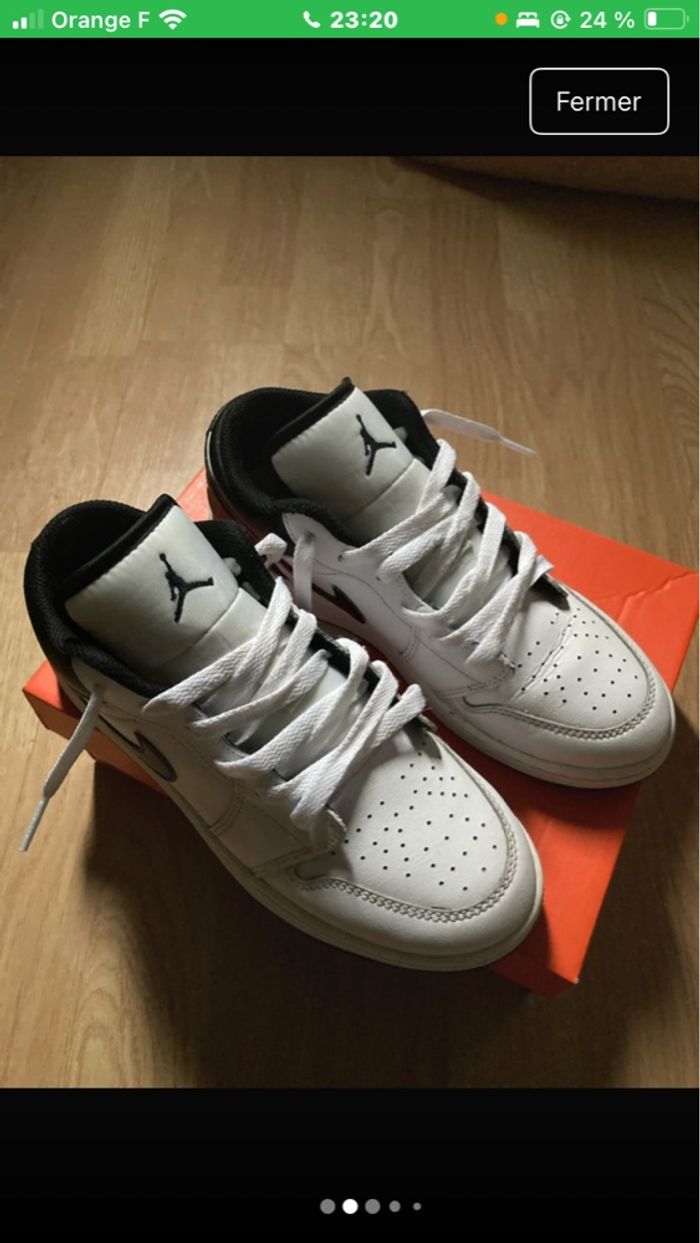 100% originale. Modèle classique, passe partout, super confortable. État : portée mais encore en très bonne état. Quelques traces normales d'utilisation sur la semelle intérieur (voir photos). Semelles OK, cuir encore solide, aucune déchirure. Idéales pour quelqu'un qui veut une bonne paire Jordan sans mettre 150€. Envoi rapide et soigné. N'hésite pas si tu veux plus de photos ou une négociation.