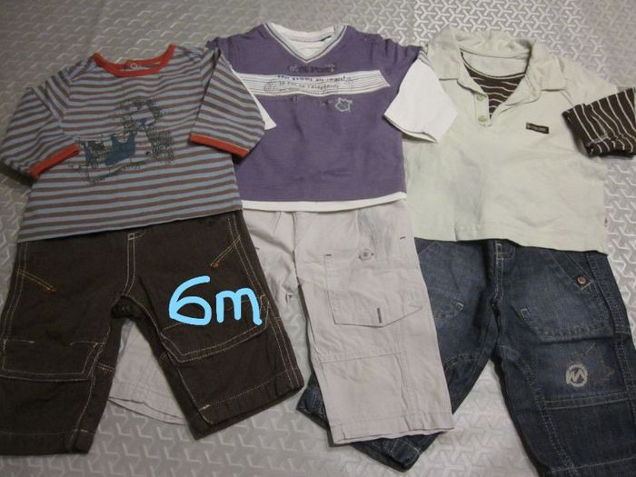 6m, 2 salopettes + 5 hauts ml + veste à capuche + 3 pantalons