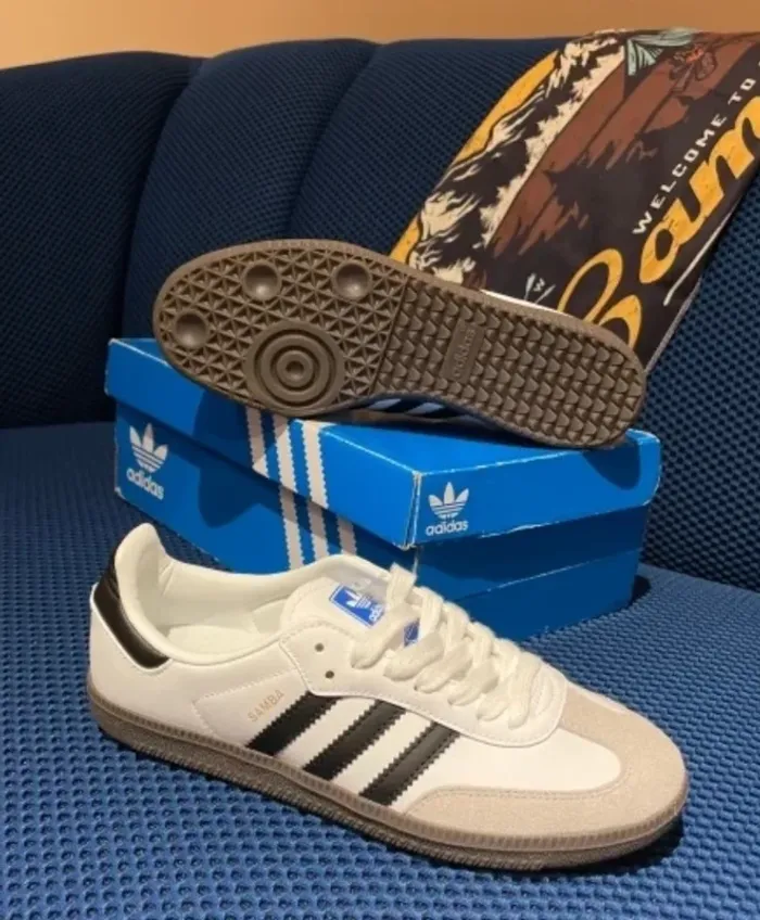 Chaussure adidas Samba - Taille 38 Neuf avec étiquette · Modèle iconique et intemporel ✨État : Neuf, jamais porté, impeccable et dans sa boîte d'origine. ✨Marque : adidas, la référence incontournable du style sportswear. ✨Style : Design classique et reconnaissable entre tous, avec son surette en cuir gum et ses trois bandes signature. ✨Polyvalence : La chaussure idéale pour toutes les tenues. Se porte avec un jean, un costume, un short ou une jupe. Livraison soignée et rapide 📦 Un incontournable des dressings, idéal pour compléter votre collection ou pour un cadeau sûr !