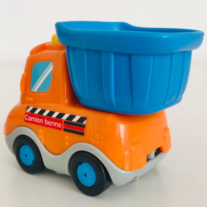 Je vends un véhicule interactif tutut bolide « Eden Camion Benne » en très bon état, excepté peinture un peu effacée à l’avant (voir dernière photo). Lorsqu’on appuie sur le bouton sur le toit la benne bouge. Musique, sons et lumière. Piles non fournies.
