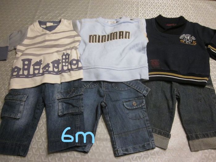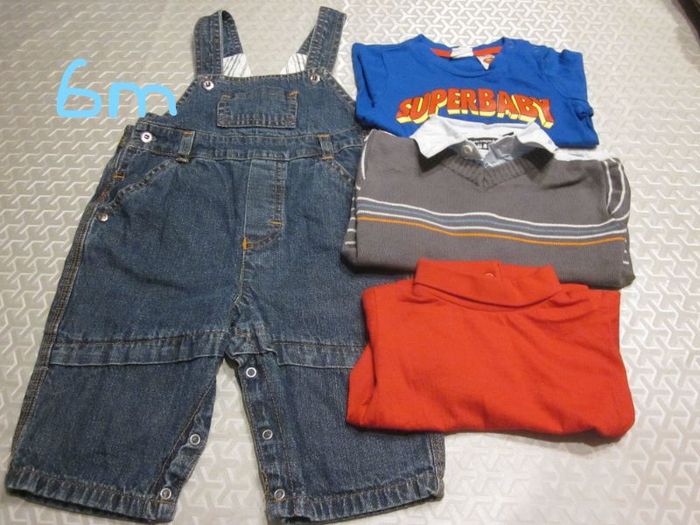 6m, 3 hauts + 3 pantalons + 2 vestes + salopette + 3 hauts