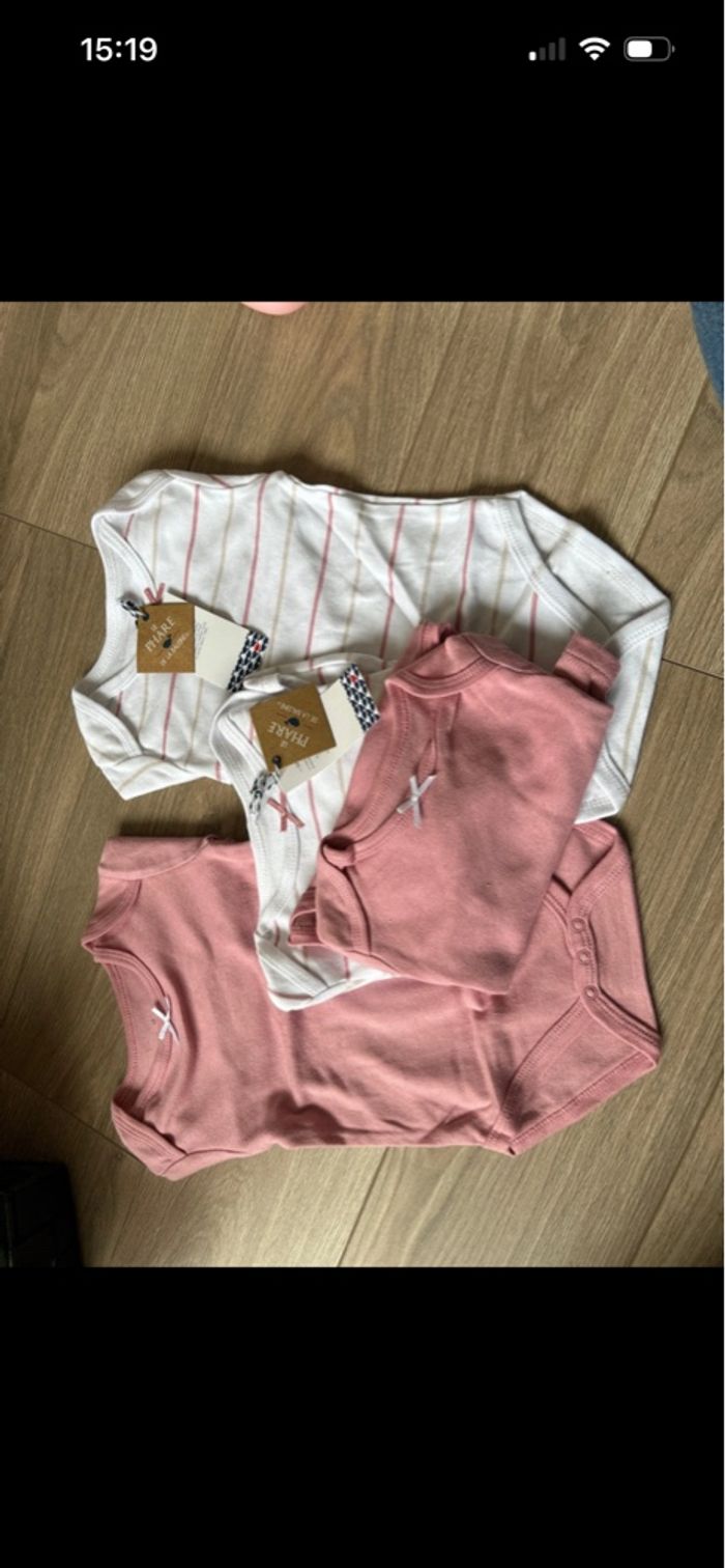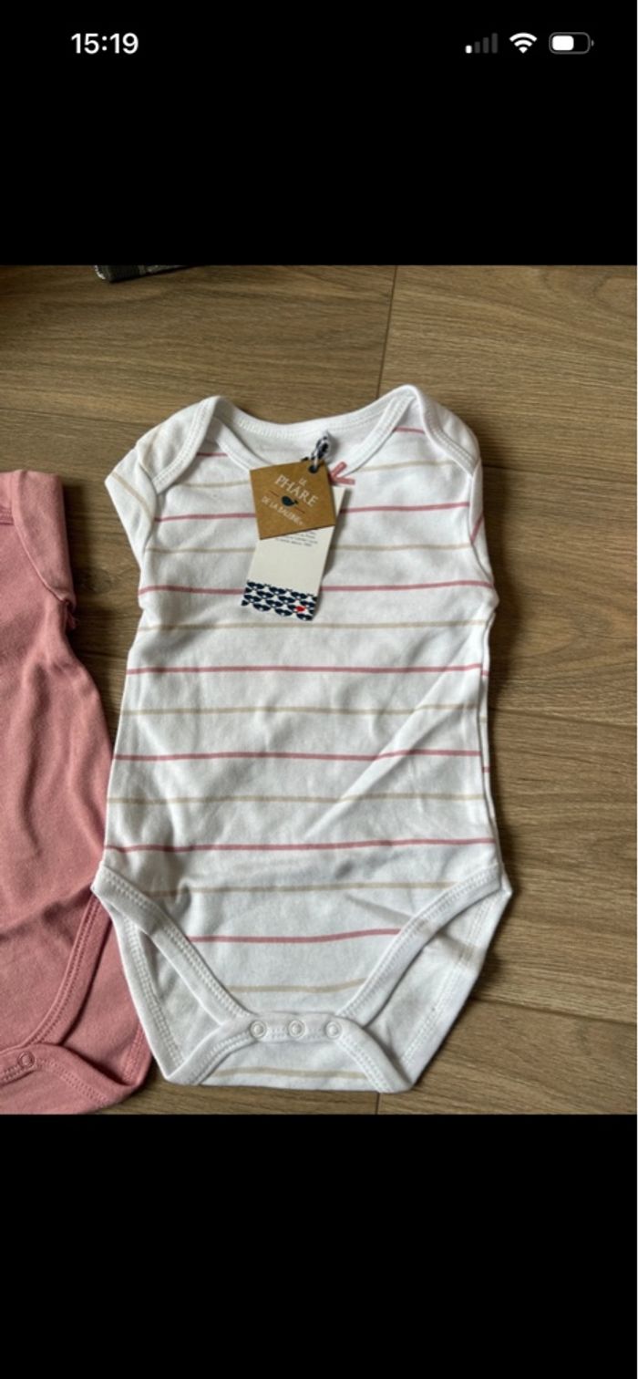 Neufs jamais portés. Encore l’étiquette. 4 bodies manches longues en 18 mois. Marque Phare de la baleine. Achètes 18€ les 4.