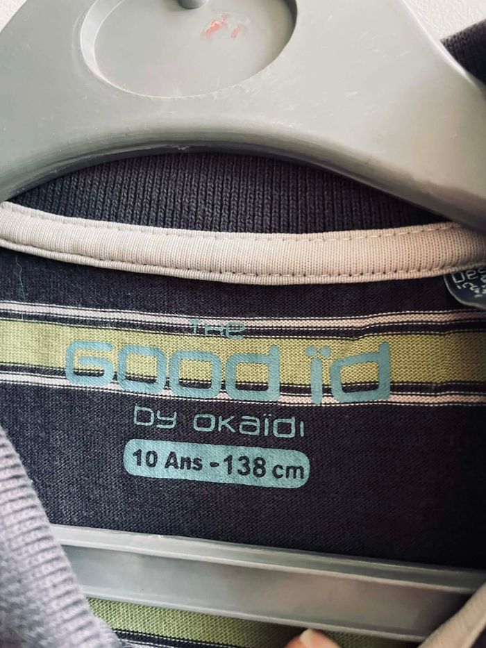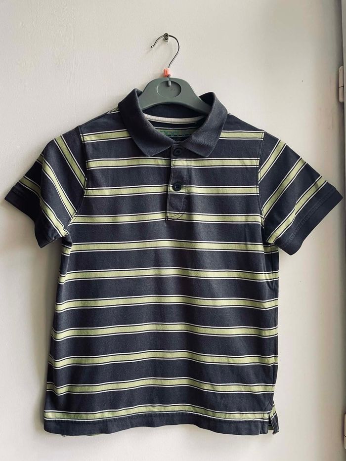 Polo manches courtes T 10 ans Fond gris foncé avec rayures vertes En coton Marque "Okaïdi" Très bon état Envoie sous 48 h