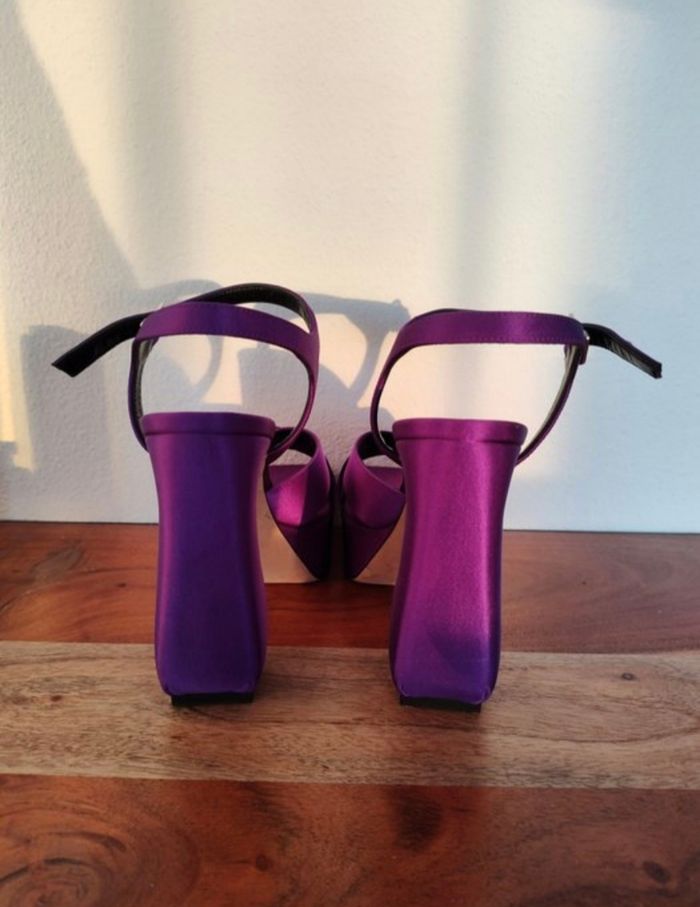 Chaussure a talon magnifiques de Sergio Rossi en très bon état. Fait en satin et en cuir de veau.
