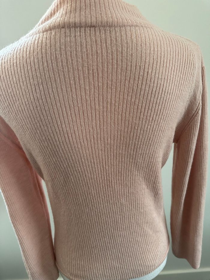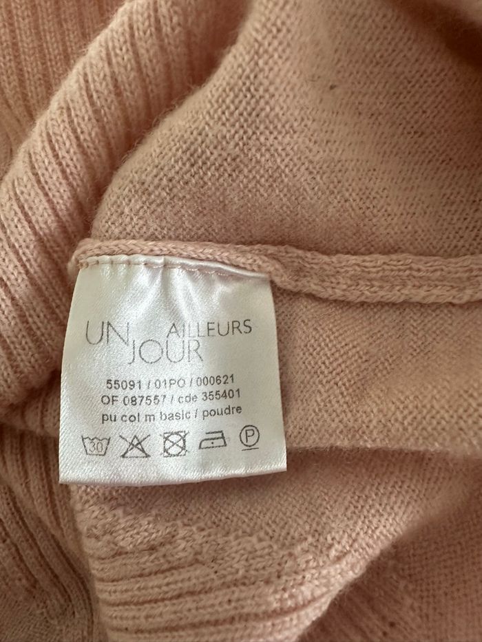 Pull - Excellent état - Taille 36 équivalent S Dimensions en bas de l’annonce - Couleur rose poudré - Maille côtelée - UJA, Un jour ailleurs - Laine mérinos - Fabrication italienne 🇮🇹 - Ultra doux et chaud - Pas d’étiquette de taille Dimensions: - 48 à 60cm niveau aisselles - 55cm de long