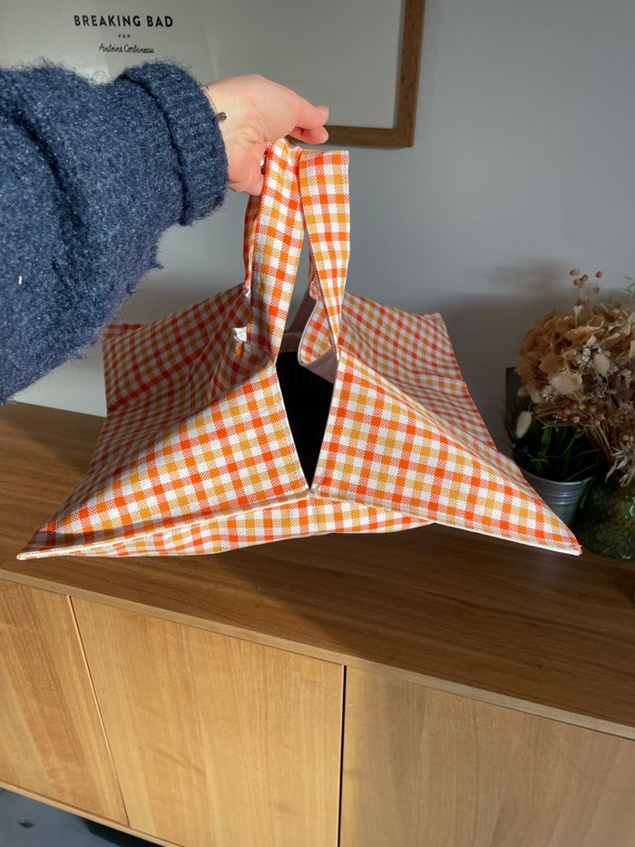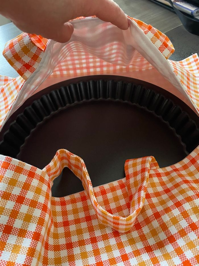 Extérieur coton Intérieur tissu coton 42cm X 42cm Lavable en machine et sèche linge autorisé S’adapte à tous types de plats Sac à gâteau Sac à pizza Idée cadeau