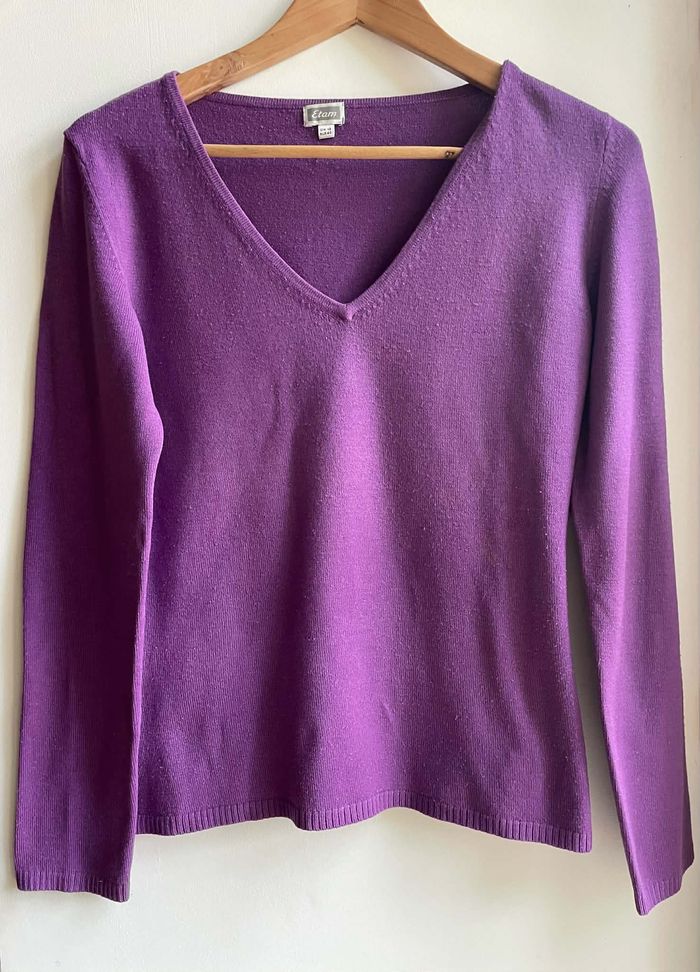 Pull col V Violet uni Marque "Etam" Acrylique,polyamide et élasthanne T 40 Très bon état Envoie sous 48 h