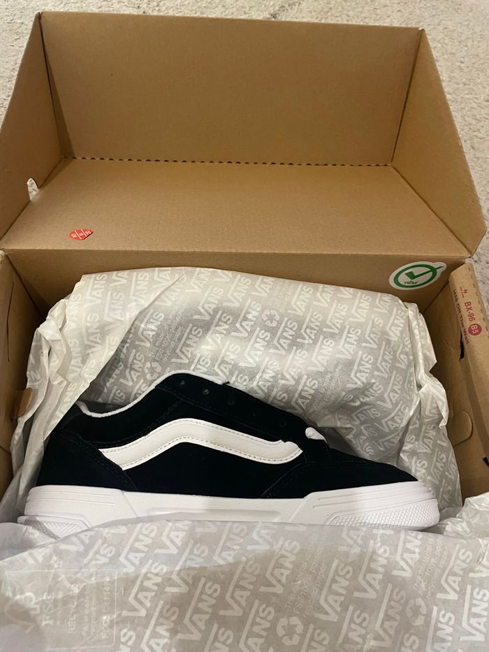 Vans hylane à lacets. Matière nubuck Taille 35 noir et blanc. Neuf jamais prte avec étiquettes. N’hésitez pas à me contacte.