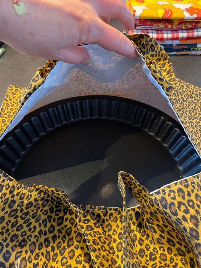 Extérieur coton Intérieur tissu coton 42cm X 42cm Lavable en machine et sèche linge autorisé S’adapte à tous types de plats Sac à gâteau Sac à pizza Idée cadeau