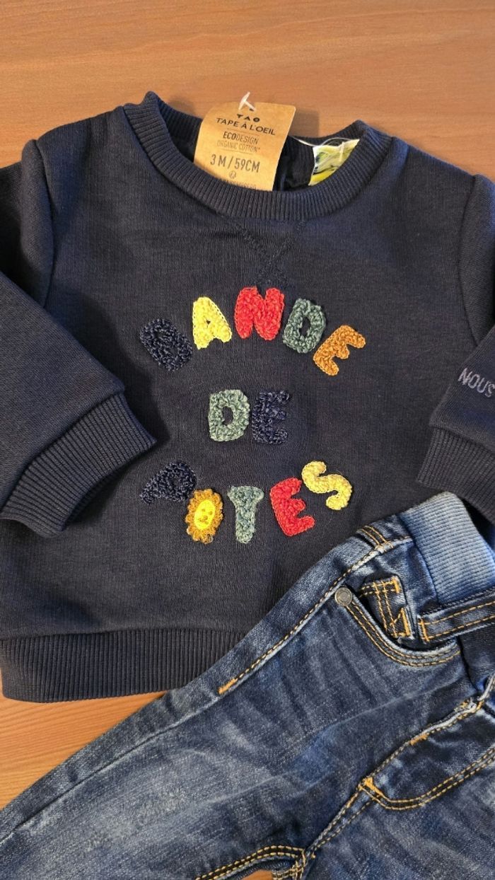 (NEUFS NON PORTÉS)🏷🏷💙💙 ensemble sweat molleton et jeans 3mois Garçon  - photo numéro 1