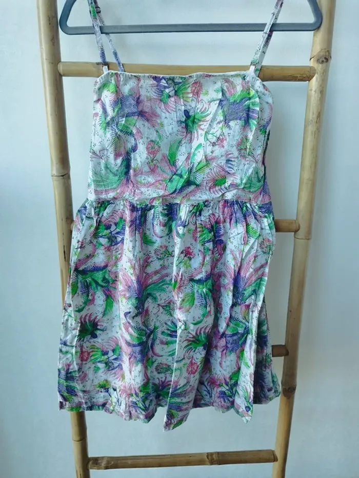 Robe courte bustier à imprimés rose et vert Bonobo Bretelles amovibles,longueur mi-cuisses, jupe évasée La robe est doublée. Peu portée, parfait état #bonobo #bonobofemme #bonoboM #robe #bustier #minidress #summer #summerdress #casualdress #summervibes #bonoboplanet